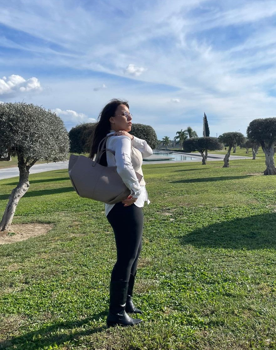 Il vero punto di forza di CYME è la sua doppia funzionalità. Può essere indossata aperta, con i manici rivolti verso l'esterno e i lati aperti, per un look moderno e accattivante. Oppure può essere indossata chiusa, con i lati ripiegati verso l'interno e i manici incrociati, creando un'elegante forma floreale, ideale per le occasioni più eleganti.